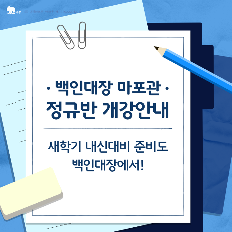 백인대장 마포만의 내신대비 학교반 개강, 학생들을 위한 스터디 카페까지!