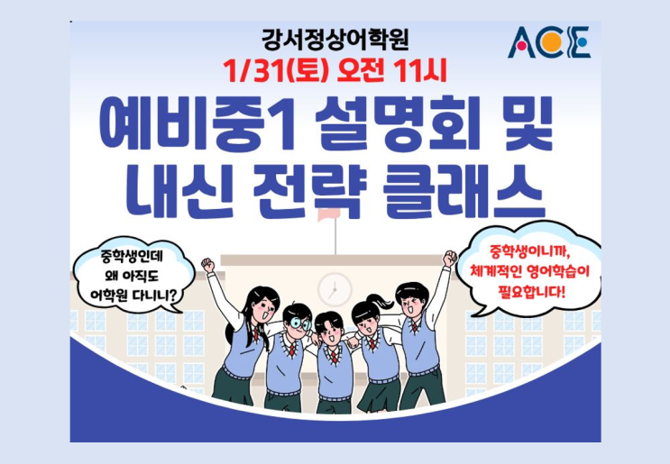 [강서영어학원] 1/31(토) 예비중1 설명회 & 내신 전략 클래스