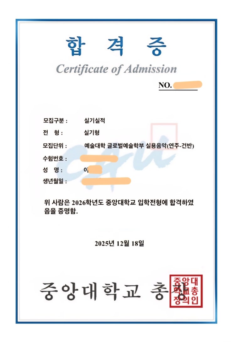 3년간 연습실을 이용해준 학생에게 너무너무 기쁜 소식이 왔어요❤️ 중앙대 합격을 진심으로 축하드립니다 <img src="https://blogthumb.pstatic.net/MjAyNTEyMjJfNjYg/MDAxNzY2MzgxMzk2ODQ4.orGttpDR-ToOsk9xFtiRL50Ymutpqfzm8eivEMMe5Vkg.BLTKux3HmGucTdhWSvAK_VyhaWx5rhts3VAmR8qaawIg.JPEG/900%A3%DF1766381052694.jpg?type=s3" />