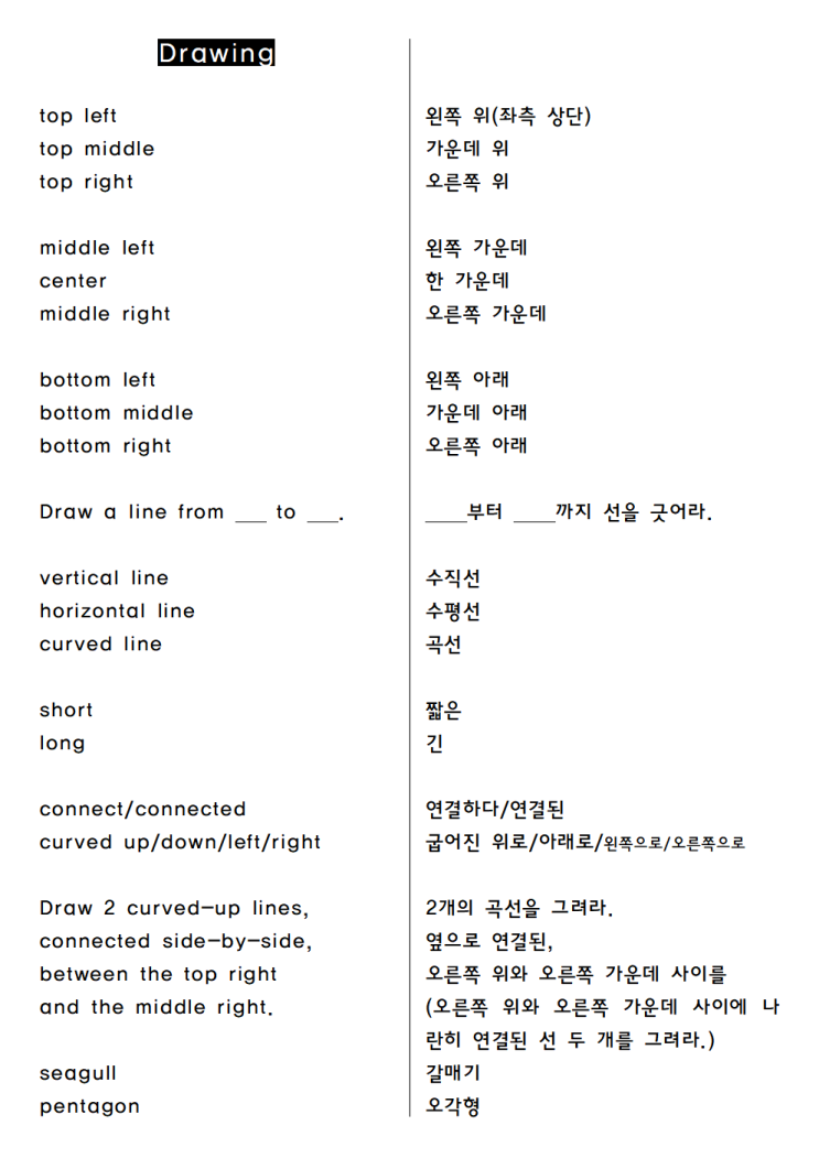 안녕하세요~~ 앤젤라 입니다.~^^ 오늘은 영어캠프 1탄에 이어 2탄에 대하여 이야기 나눠 볼까 합니다. 오전에 6명의 캠프 참여 원장님들과 미팅을 다녀왔는데요, 어떻게 하면 우리 아이들 입에서 영어로 자연스럽게 나오게 할까 고민하며 열띤 토론의 시간을 가졌습니다. 목 차 1. Drawing 2. Do your Action 3. Thank you card for Parents 1.Drawing 이것들을 잘 공부하고 캠프에 참여하기! 귀가 트이고 입이 열리는 그 순간을 경험할 준비를 하시고 오늘도 즐겁고 가벼운 마음으로 듣고 따라하기 연습합니다. 마지막에 나오는 오각형이라는 단어~에 집중해주고~~ pentagon (펜타곤) 블로그를 쓰는 원장님 옆방에서 원어민 선생님과 열심히 Dra....... <img src="https://blogthumb.pstatic.net/MjAyNTEyMzBfODMg/MDAxNzY3MDgwNDUwNTIx.EhD7bI9QMRPB19lKFiGsv6pwtzL3GbgB45snOqJGyzEg.0bI-JrRHqeDjtyU83FwCVm_tocOJlxT2Gh90FZApFdkg.PNG/Drawing001.png?type=s3" />
