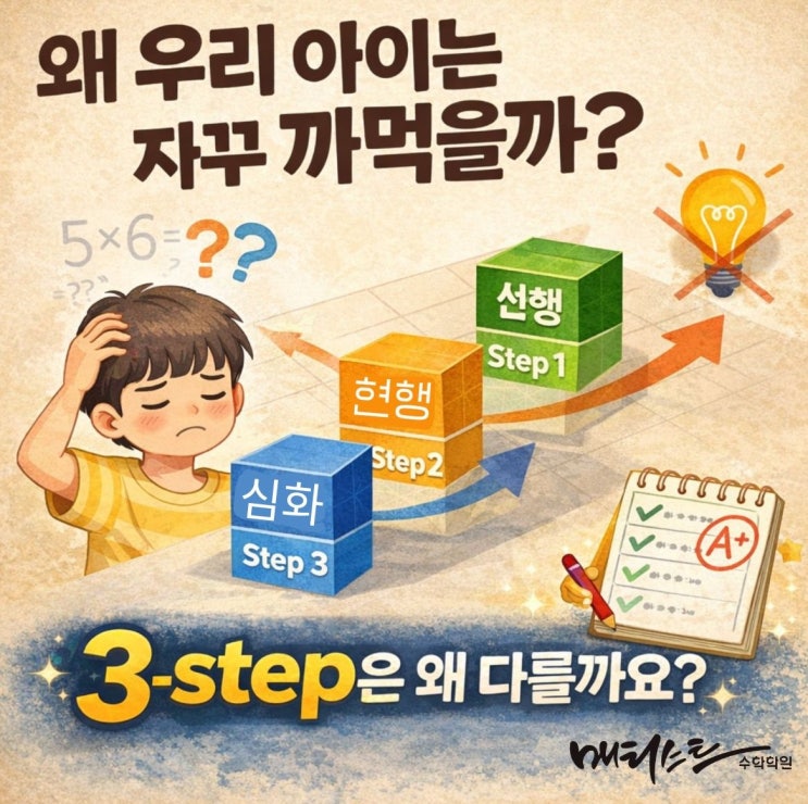 성적이 오르는 이유, 진도표를 보면 보입니다 학부모님들이 가장 많이 하시는 질문이 있습니다. “분명 배웠는데 왜 또 틀릴까요?” “이해는 했다고 하는데 성적이 안 올라요” 이건 아이의 문제가 아닙니다. 학습 구조의 차이에서 나오는 결과입니다. ❗ 대부분 학원의 한계 많은 학원들은 선행만 빠르게 나가거나 현행만 반복하거나 심화를 따로 진행합니다 하지만 이 방식의 공통점은 하나입니다. “한 번 하고 지나간다”는 것 그 결과는 뻔합니다. 시간이 지나며 잊고 개념이 끊기고 결손진도가 쌓입니다 그래서 성적이 정체됩니다. 진학매티스트의 3-step 학습 시스템 진학매티스트는 다르게 접근합니....... <img src="https://blogthumb.pstatic.net/MjAyNjAzMjBfNjEg/MDAxNzczOTkzNzY0OTU4.ySdRThskg9en89CPKPeyv7hkYEpzNAHLFlLY6bN9s9wg.xPrb4Yu9xNLjnxmzpt_hSxdyOkfkADivC2h9P6avSMQg.JPEG/3step.jpg?type=s3" />