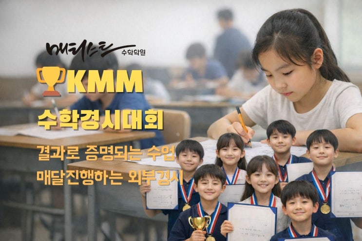 매달 마지막 주 금요일, 진학매티스트가 외부경시를 진행하는 이유 수학 실력은 한 번의 시험으로 만들어지지 않습니다. 진학매티스트는 아이의 수학을 결과보다 과정으로 키우는 학원입니다. 그래서 매달 마지막 주 금요일, 재원생을 대상으로 **KMM 수학경시대회**를 꾸준히 진행하고 있습니다. 왜 ‘외부경시’일까요? 외부경시는 단순히 점수를 확인하는 시험이 아닙니다. ✔️ 전국 기준으로 아이의 수학 실력을 객관적으로 확인할 수 있고 ✔️ 학원 수업에서 배운 개념이 실전 문제에서 어떻게 적용되는지 점검할 수 있으며 ✔️ 풀이 과정 속에서 사고력과 문제 해석 능력이 드러납니다. 특히 KMM 수학경시대회는 연산 속도보....... <img src="https://blogthumb.pstatic.net/MjAyNTEyMjRfMTkg/MDAxNzY2NTU1NjU5ODI2.oypTu-0fgzNhazBsz_w7QrmU0R7Ib3-v93-sdOY9soog.X578IvkE1v0y8wJGegPDGwFse0WpPUy9LWcGUHx4Lg4g.JPEG/%C1%F8%C7%D0%B8%C5%C6%BC%BD%BA%C6%AE_%281%29.jpg?type=s3" />