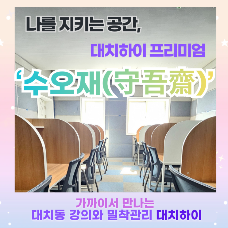 대치하이학원 서울 영등포구 당산로 159 휘선 빌딩 6층 본관 7층 프리미엄관 당산에서 공부 분위기까지 갖춘 학원, 대치하이 프리미엄관 ‘수 오 재’ "수업 전후에 공부할 공간이 있나요?" "자습실이 있나요?" "빈강의실에서 공부해도 되나요?" 학원을 선택할 때, 많은 학부모님들이 고민하시는 지점이 있습니다. 우리 아이가 스스로 공부할 수 있는 환경이 갖춰져 있는가입니다. 결국 성적을 만드는 건 수업 2~3시간이 아니라, 그 이후 이어지는 자기주도 학습 시간입니다. 저희 대치하이는 이 부분을 중요하게 봅니다. 6층 본관에는 초중고 누구나 이용가능한 무료 자습실이 완비되어 있지요. 수업 전후를 이용....... <img src="https://blogthumb.pstatic.net/MjAyNjA0MDJfNzAg/MDAxNzc1MTMyNjc5MjY2.qJkMpaeKqZOBr3VHjTTb_5Vq5GcEOKyfwouQTArXxGQg.vERb3qAnw7I1_JKkJukT98OHDnevBxbrxPSwb3gD-Fkg.PNG/1.png?type=s3" />