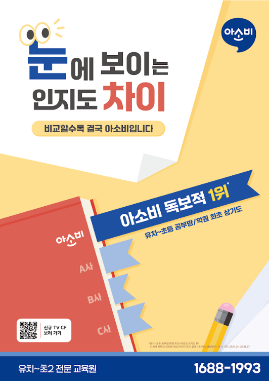 안녕하세요? 연세나로학원입니다. 아소비, 눈에 보이는 인지도 차이를 경험해보세요! "공부의 시작은 연필과 종이책으로, 교육을 지킨다, 아소비!" 믿기지 않으시겠지만, 아소비는 독보적인 1위라는 사실! 그만큼 많은 학부모님들이 아소비의 교육 효과를 직접 경험하고 만족하셨기 때문에 가능한 결과라고 생각합니다. 결과로 증명하는 학부모님의 이유 있는 선택! 99% 향상 효과 재원생들의 학습 능력 향상 효과를 직접 느껴보세요! 100% 추천 의향 아소비의 교육 방식에 100% 만족하여 주변에 추천하고 싶다는 학부모님의 마음을 담았습니다. 아소비는 왜 특별할까요? 아소비는 단순한 학습지도 그 이상입니다. 유치~초등 저학....... <img src="https://blogthumb.pstatic.net/MjAyNjAyMTNfMTYg/MDAxNzcwOTg3NTkwNTMx.z5i2j9y9w_Q0JnRb2wZq279jjGNjCeEK6R-CQK3rK-Qg.vTkuSGskGbJZuViENwjFVpdU6-tqUUDtmGaXF2BsuBgg.PNG/1770967815073.png?type=s3" />