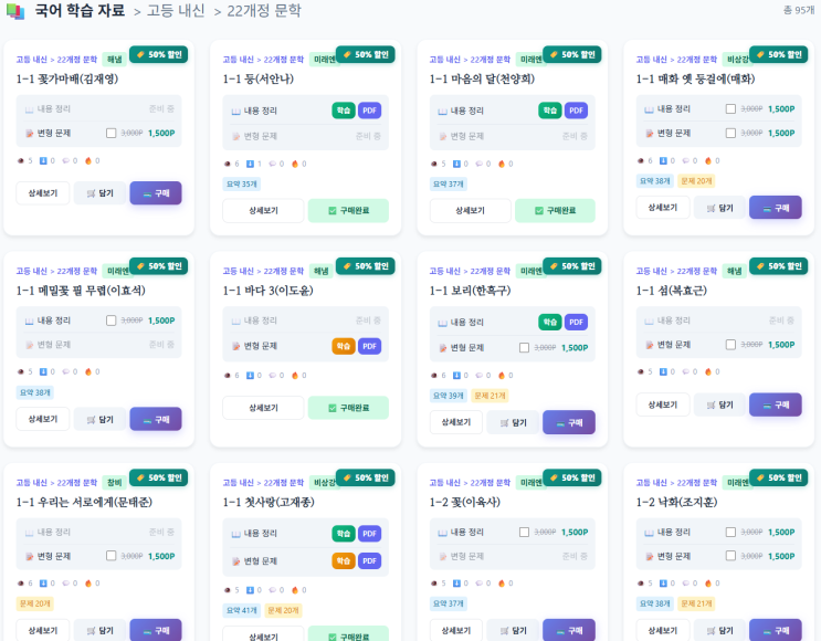 22개정 문학 비상강, 해냄, 미래엔 작품 모두는 아니지만, 95개 작품에 대한 내용 분석, 예상 문제가 준비되어 있습니다. 2월 한 달 간 50% 할인 행사 중입니다~ 직접 구입 https://pureun.kr/ <img src="https://blogthumb.pstatic.net/MjAyNjAyMTNfMjk3/MDAxNzcwOTUxMzAzOTM5.vVoDtOrdKF0-WQKew2izGBCACGk79_c3SZIPiJriZNYg.7PB3V3rJ0xwgZuiy4E8EohYnonqACeXg59Eb2WO6tG0g.PNG/image.png?type=s3" />
