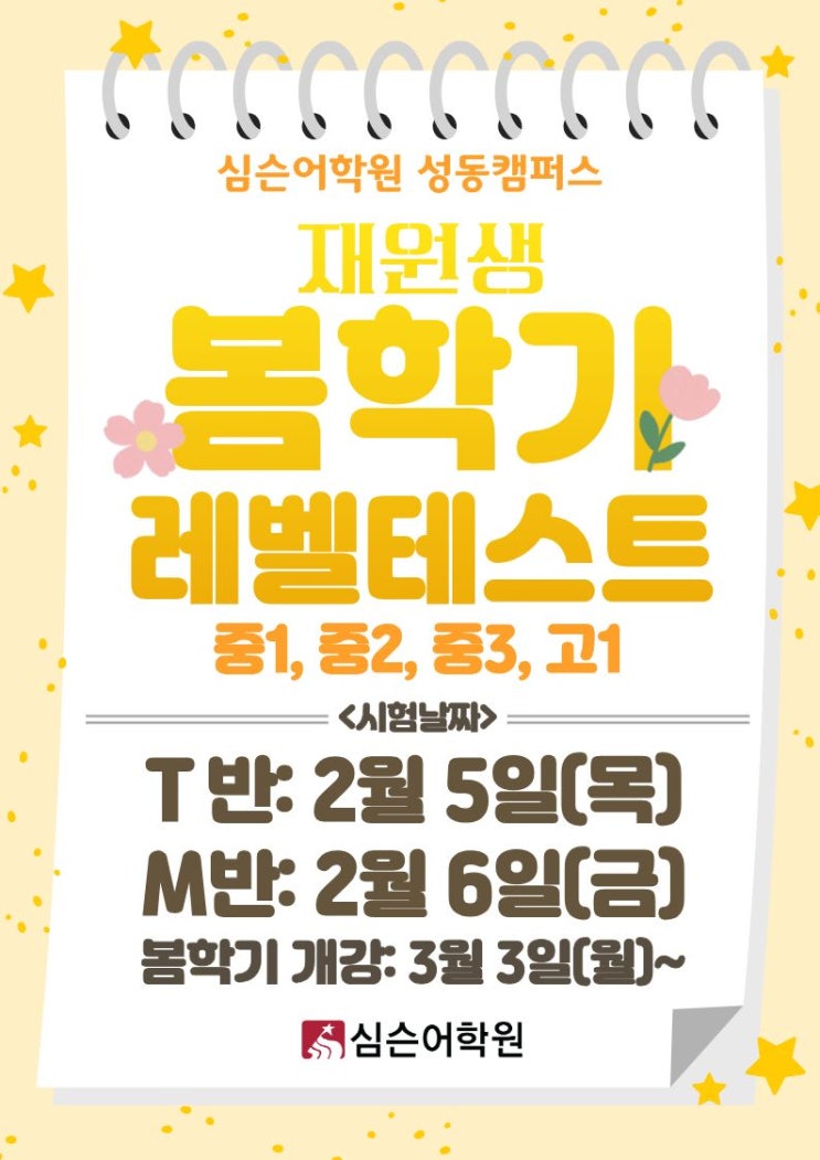[심슨어학원 성동 중등]새 학기 시작 전 꼭 확인하세요!|레벨테스트와 학부모 온라인 줌 설명회 안내