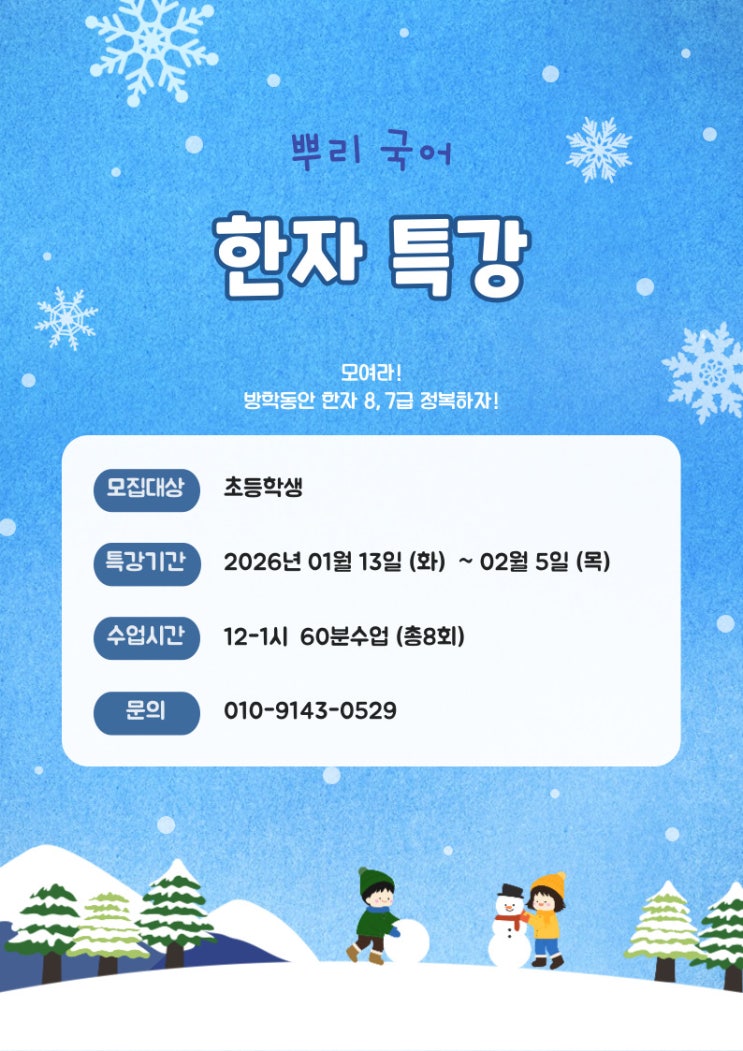 뿌리국어 겨울방학 한자 특강