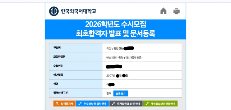 안녕하십니까? 안동 옥동에서 탑국어전문을 운영중인 원장입니다. 오늘은 2026 대입 합격 소식입니다. 합격한 학생과 합격증입니다. 요즘 핫한 반도체 전공입니다. 내신이 그리 뛰어난 것은 아닙니다. 생기부가 그리 뛰어난 것도 아닙니다. 하지만 인서울이 불가능한 것은 아닙니다. 그래도 최초합격했습니다. 사람들의 편견은 견고해서 아무리 이야기해도 잘 안 깨집니다. 실제 근거를 들이대도 그건 특이한 케이스라고 말합니다. 제 학원 다녔던 학생들은 거의 80% 이상이 특이한 켕이스입니다. 합격을 측하합니다. <img src="https://blogthumb.pstatic.net/MjAyNTEyMTZfMjA5/MDAxNzY1ODkyODEzNzEz.XQEKzOqjXMgE97wW5DDsXNgE-ST1trhwGjtP5ceZ1mkg.lgeTY9lVjNXV-h39EYjRKMESz8wtzaMXW9vwjzIcwOEg.PNG/%C0%CC%BF%B5%C1%D8%C7%D1%B1%B9%BF%DC%B4%EB.png?type=s3" />