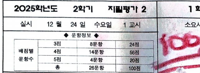 이번 기말 시험은 난이도가 있었습니다. 해석 능력과 이해도가 없다면 100점을 맞기가 쉽지 않은 시험입니다. 학교에 100점이 많지 않습니다. 저희 학원생이 이번에 100점을 맞았는데 이유가 꾸준함에 있습니다. 공부를 습관적으로 하도록 꾸준히 하도록 이끌었는데 정말 쉽지 않는 준비였습니다. 그래도 열정있는 선생님의 리더로... . . . .. 뉴캐슬(옥동) 054 855 1452 아래는 경안중 시험의 유사한 형태입니다. 1️⃣ 영어 성적, 습관이 만든다 시험 일주일 전 벼락치기로는 절대 성적이 오르지 않아요 영어는 반복이 핵심인 과목입니다 2️⃣ 평소에 조금씩이 답 매일 조금씩 꾸준히 하면 시험 직전에도 여유가 생겨요 영어는 누적 과목이에....... <img src="https://blogthumb.pstatic.net/MjAyNTEyMjZfMjI5/MDAxNzY2NzUwNDM3MjQ2.JZGBowMRAUD71hApeSGr_mJP_vlGHyov61REiX0fMAog.HnSVbApbNkjjZu5Buqu10eY7Zq55vTHZpHLYxysDa4Ag.PNG/%B0%E6%B4%F6%C1%DF1-100%C1%A1.png?type=s3" />