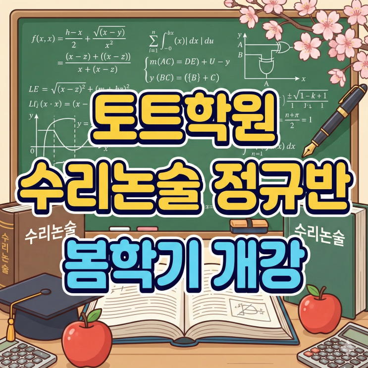 안녕하세요, 토트학원입니다! 2027학년도 입시를 준비하는 수험생들을 위해, 목표 대학별로 세분화된 수리논술 3대 핵심 과정을 개강합니다. 본인의 목표와 준비 상황에 맞는 클래스를 선택해 합격의 문을 두드리세요! 1️⃣ [프라임 클래스] 의·연·고 최상위권의 정점 의치한약수 및 연세대, 고려대를 목표로 하는 최상위권 학생들을 위한 고난도 집중 과정입니다. 개강: 3월 7일(토) 입학 기준: 수1, 수2, 미적, 확통, 기하(15문항) 테스트 70점 이상 수업 특징: 150분 심화 강의 후 90분간 실전 평가를 진행하여 빈틈없는 논리력을 완성합니다. 2️⃣ [수리논술 정규반] 주요 상위권 대학 공략 서강대, 한양대, 중앙대부터 인하대, 아주대까지....... <img src="https://blogthumb.pstatic.net/MjAyNjAyMDFfMTgw/MDAxNzY5OTE4MzMwNzI0.dCDNL7wBn9zWzzQ9IZ7Tpk-HK7JgbIRcvhUfgxn4rAQg.P6mSczCHrvqBO5fPem4Jzg465UJX_o5xVAV8MBk9OGcg.PNG/20260125_%BC%F6%B8%AE%B3%ED%BC%FA%BA%BD%C7%D0%B1%E2%BD%E6%B3%D7%C0%CF.png?type=s3" />