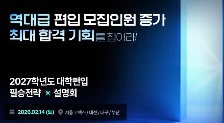 편입 합격의 기회, 코엑스에서 잡으세요! 2027학년도 김영편입 필승전략 설명회 (feat. 역대급 혜택)