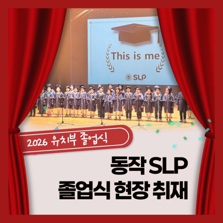 지난 2월에 있었던 동작SLP 7세 친구들의 졸업식! ★ 지난 졸업식 은 해당 포스팅 통해 확인 가능합니다☺️ 우리 친구들의 멋진 퍼포먼스 소식을 듣고 SLP 본사에서 ★현장취재★를 오셨었는데요 :) 이번에 그 취재내용이 공식 SLP 블로그에 올라왔다는 따끈한 소식을 공유드립니다! https://m.blog.naver.com/sogang_slp/224205417697 * 동작SLP SAP CLASS 스피치 대회의 소식 또한 공식 블로그 통해 확인해보실 수 있답니다! 아이들이 앞으로도 영어라는 도구를 통해 자신감 있게 말하고 생각을 표현하며, 멋지게 성장할 수 있도록! 우리 SLP는 앞으로도 계속해서 응원하겠습니다 <img src="https://blogthumb.pstatic.net/MjAyNjA0MDFfMTIg/MDAxNzc1MDEzMzczMjA4.xtERbyLgsRRGMltMicfIWUI-XPo8UoZO-3hgPSNg8Bcg.8roz0_mSUsOkWIgv1J-69fMoNPJdlbz314uwQkp8SkYg.JPEG/%B5%BF%C0%DBSLP_%C1%B9%BE%F7%BD%C4_%BD%E6%B3%DA2.jpg?type=s3" />