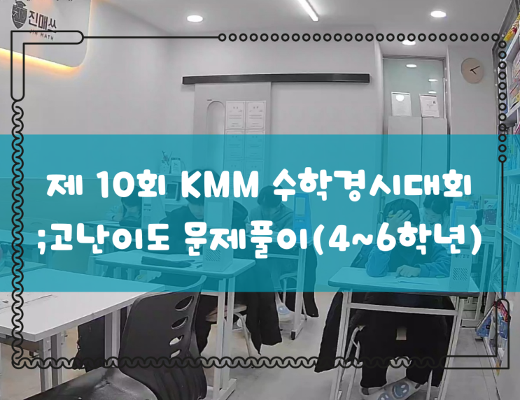 안녕하세요. 지난 주에는 2학기 전체단원을 평가범위로 하는 제 10회 KMM 수학학력평가가 있었어요. 조용한 교실, 연필 소리만 또각또각 들리는 시간. 아이들은 문제를 읽고, 다시 읽고, 한동안 멈춰 생각합니다. 이번 제10회 KMM 수학경시대회, 시험이 끝난 뒤 아이들의 답안과 표정을 보며, 또한 아이들이 푼 시험지를 보며 “이번 회차는, 단순히 계산이 어려운 시험이 아니었다.” 라고 생각했답니다. 2학기 전 범위, 그리고 ‘사고력’을 요구한 시험 이번 KMM은 2학기 전체 범위에서 출제되었습니다. (6학년은 1~2학기 전체) 이전 회차와 비교했을 때 가장 큰 차이는 계산량이 많아서가 아니라, 공식을 몰라서가 아니라, 개념을 정확히 알....... <img src="https://blogthumb.pstatic.net/MjAyNjAyMDJfNzAg/MDAxNzY5OTk1NjU4ODMz.teA6x7si4FlEsrxPxZIvZoCzT7I-OjIY7hUxJuazFYYg.5SKxvcXDNyTiwBm6dmtyHclgTtYiVwQf6KEkBPZCX_gg.PNG/1.png?type=s3" />