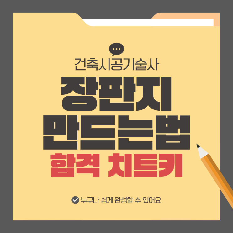 장판지가 뭐길래? 안녕하세요 종로기술사학원 홍반장입니다 건축 자격증의 꽃이라 부르는 건축시공기술사 시험 어렵긴해도 끝까지 하기만하면 붙는다 이런 소리를 많이 하시는데요 얼마나 빠르게 전략적으로 붙을지는 바로 장판지에서 판가름 난다고 보시면된답니다 건축시공기술사 공부량이 워낙 방대해서 어디서부터 손을 대야 할지 막막하다는 분들이 많거든요 건축시공기술사 하면 하도 장판지 장판지 하는데 그 장판지가 뭔지 어떻게 공부하는지 소개해드리려고 합니다 건축시공기술사 장판지 그게 대체 뭔가요 처음 듣는 분들은 바닥에 까는 장판지? 라고 생각하실 수도 있어요 기술사 시험에서 장판지는 학문적 챕터별 체계를 커다란 종이....... <img src="https://blogthumb.pstatic.net/MjAyNjAzMTBfNiAg/MDAxNzczMTM0ODE3ODMx.gMAOCTA9q_Kpr4kpXQj7-rfuCLuVusFgpZfOeF5asXwg._ymOv5Q8ZQGJFAPPoUxFQPGq8CHxqGNCn6pyjxcdGV0g.PNG/1.png?type=s3" />