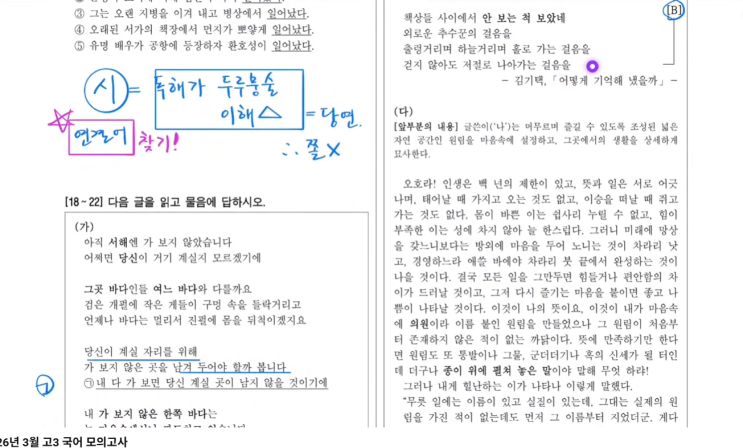 안녕하세요. 대치동 20년 고수, 국어 성적 향상의 달인 원어비 국어오름 하진우 원장입니다. 오늘은 최근 많은 학생을 당황하게 했던 고3 국어 모의고사 문학 지문, 그중에서도 현대시와 고전 수필이 복합된 지문을 어떻게 실전적으로 정복해야 하는지 정리해 드립니다. 1등급으로 가는 길은 완벽한 독해가 아니라 선지와 지문 사이의 명확한 연결어 찾기에 있습니다. 1. 멘탈 관리의 핵심: 시는 완벽하게 독해하는 것이 아니다 이번 모의고사 18번 문학 첫 지문부터 막혀서 멘탈이 흔들린 학생들이 많았습니다. 하지만 기억하세요. 현대시의 함축성을 시험장에서 100% 이해하는 것은 불가능에 가깝습니다. 시의 의미를 완벽하게 이해하려 들지 말....... <img src="https://blogthumb.pstatic.net/MjAyNjAzMzBfMTE2/MDAxNzc0ODQ4NzU2OTE0.mR69T4Zm1DlLlWhT5zxsDRTobjpPdeE1GvBHkT6L8bsg.Y7gBJ5M4B5ZDCSEEbvMblFjRhTbEeoYsfLAO5Bn3iEMg.PNG/%BF%F8%BE%EE%BA%F1%B1%B9%BE%EE-%C7%F6%B4%EB%BD%C3-%B5%B6%C7%D8%C0%FC%B7%AB-%BF%AC%B0%E1%BE%EE%C3%A3%B1%E2.png?type=s3" />