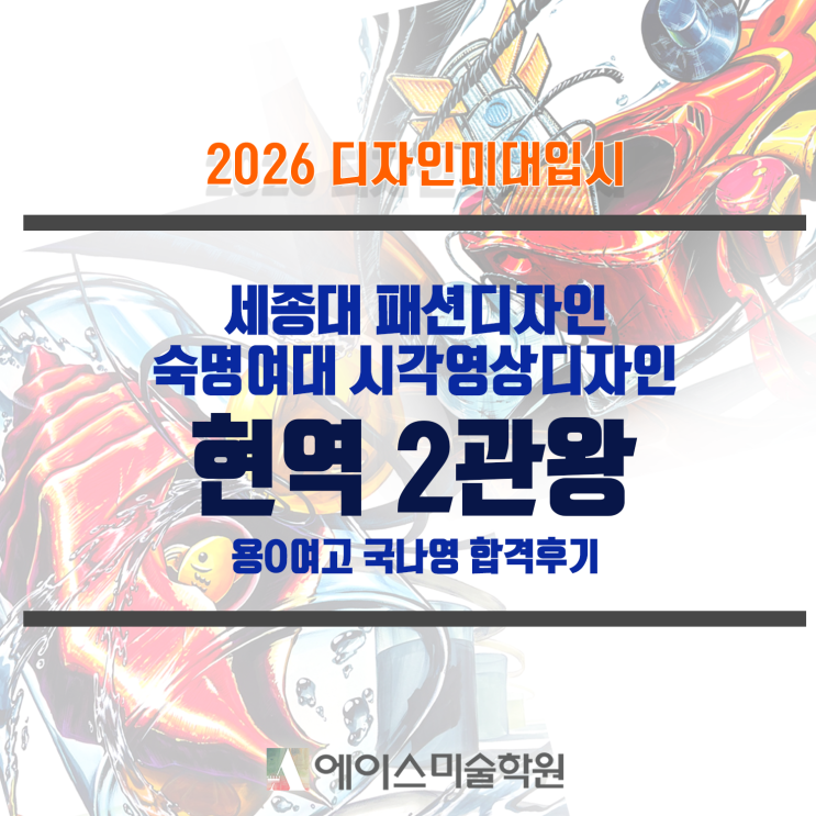 2026 디자인미대입시 세종대 패션디자인 숙명여대 시각영상디자인 2관왕 현역합격 국나영 합격후기 입시 준비 원래부터 미대 진학을 희망했었는데 개인적인 문제로 고2때 학원에 등록하게 되어서 조금 불안감이 있었습니다. 하지만 모든 학생을 열심히 케어해주시는 선생님들과 매 상담마다 해주신 진실된 피드백과 조언 덕분에 용기를 갖고 더욱 열심히 임하다보니 실기력도 눈에 띄게 성장했던 것 같습니다. 선생님의 조언을 따르다보니 수능도 소홀해지지 않게 준비할 수 있었고, 만족스러운 성적을 받아 숙대에 지원할 수 있었습니다. 준비 과정 숙대 실기는 제시어와 제시물에 어울리는 소재를 스스로 생각하고 실물 없이도 그릴 수 있어야....... <img src="https://blogthumb.pstatic.net/MjAyNjAzMjFfMjg2/MDAxNzc0MDY4NTQ0MTM3.GPYdn--_qZQ7u_sv1fgPJdkFsEyIjIsMy1cVTfY-Omwg.ldbJzesQEajOpV1E06Z1QWn8zRPjjT7Q__eyzxxD33kg.PNG/%BC%BC%C1%BE%B4%EB_%B1%E2%C3%CA%B5%F0%C0%DA%C0%CE_%BC%F7%B8%ED%BF%A9%B4%EB_%B1%E2%C3%CA%B5%F0%C0%DA%C0%CE_%C7%D5%B0%DD.png?type=s3" />