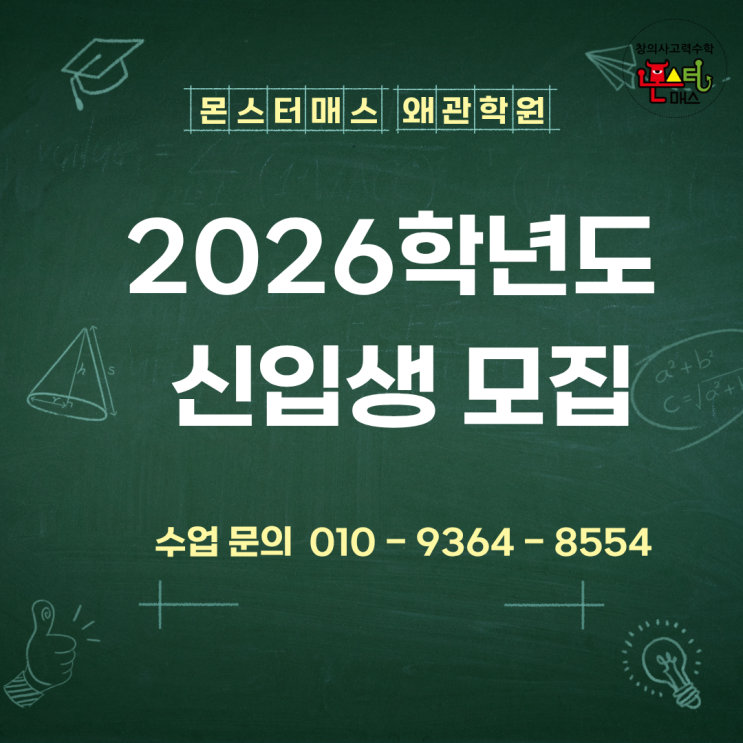 2026학년도 왜관학원 신입생 모집합니다. 몬스터매스 왜관학원