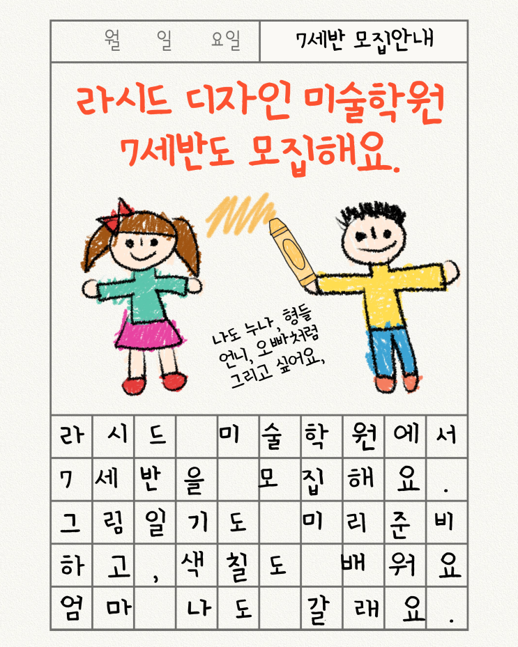 [창원,북면,무동]라시드디자인미술학원 7세반 모집!