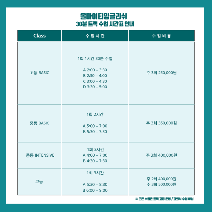 [가락영어] 올마이티잉글리쉬 30분 트랙 시간표 운영 / 1:1 밀착관리 시스템