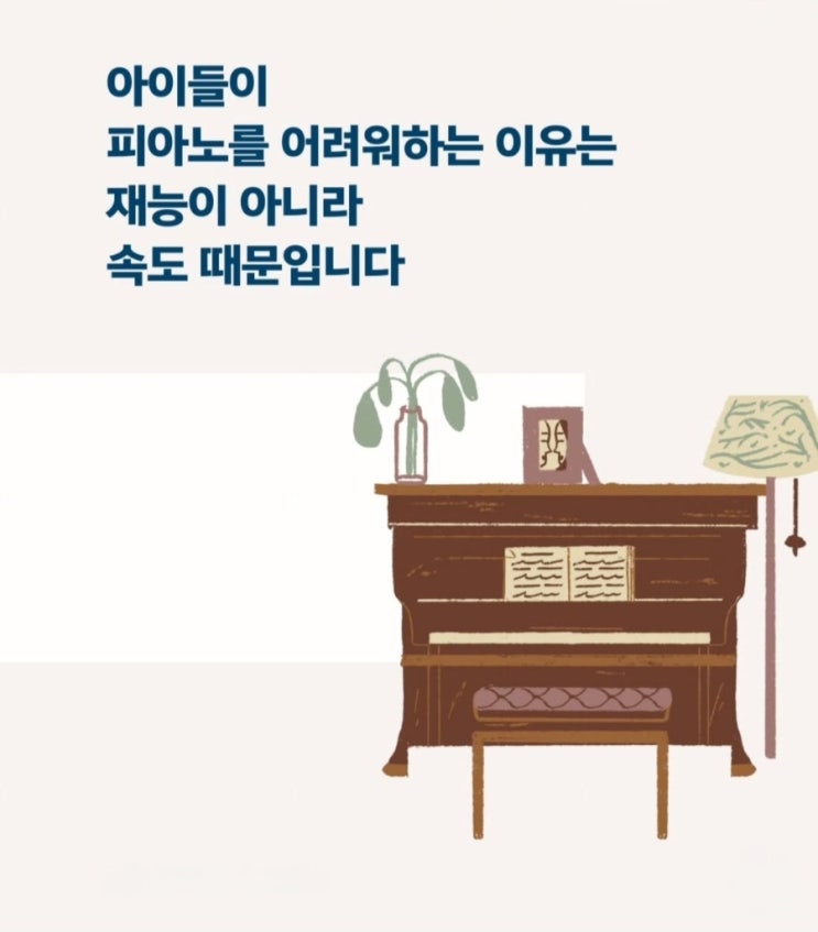 안녕하세요!정하피아노입니다 아이들이 피아노를 배우다 보면 어느 순간 "어렵다"며 힘들어할 때가 있죠. 그럴 때 우리는 흔히 '우리 아이가 재능이 없나?'라고 생각하기 쉽지만, 사실 진짜 이유는 따로 있습니다. 피아노는 재능이 아니라 '속도'의 문제입니다. 많은 아이들이 곡을 빨리 완성해야 한다는 압박,진도를 빨리 나가야 한다는 조급함 속에서 피아노를 배웁니다.하지만 음악은 결코 '속도'의 예술이 아닙니다. ⏳️기다림 속에서 피어나는 아이들의 성장 한 곡을 정성스럽게 완성해가는 과정 속에서 아이들은 단순히 악보를 보는 법만 배우는 것이 아닙니다. ✔️ 기다림을 배우고, ✔....... <img src="https://blogthumb.pstatic.net/MjAyNjAzMTFfMjQ5/MDAxNzczMjM4NjYyNjYx.6XJKcsKe8V9bCJGN115l9hCNtw_JYNu15p9olwvdWwMg.ssjt867InW5ftVND6S2ucg92-qM8PY5KDUqG6nnM1Qcg.JPEG/900%A3%DF1773238466609.jpg?type=s3" />