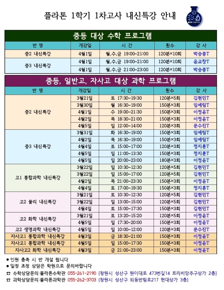 1학기 1차고사 내신대비 프로그램