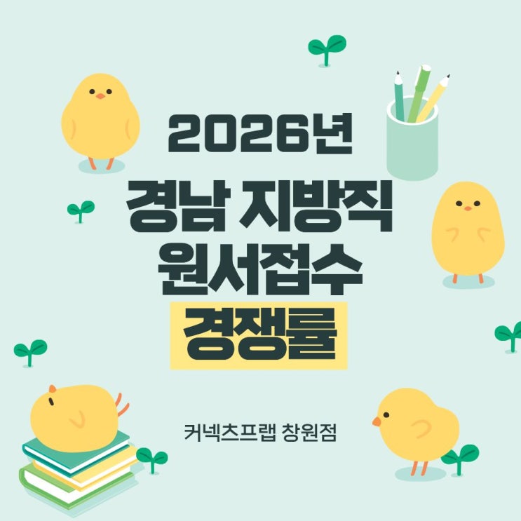 안녕하세요. 커넥츠프랩 창원점입니다. 2026 경남 지방직 경쟁률이 발표되었습니다. 지자체 1) 선발 예정 - 1,838명 2) 접수 인원 - 10,040명 3) 경쟁률 - 5.5 : 1 선발 인원이 대폭 늘어남에 따라 경쟁률이 많이 낮아졌습니다. 많은분들이 응시하시는 * 일반 행정 (일반) - 지자체 ① 경남 1) 선발 예정 - 15명 2) 접수 인원 - 107명 3) 경쟁률 - 7.1 : 1 ② 창원시 1) 선발 예정 - 120명 2) 접수 인원 - 1,419명 3) 경쟁률 - 11.8 : 1 ③ 진주시 1) 선발 예정 - 72명 2) 접수 인원 - 624명 3) 경쟁률 - 8.7 : 1 ④ 김해시 1) 선발 예정 - 44명 2) 접수 인원 - 413명 3) 경쟁률 - 9.4 : 1 시험 장소 공고 및 응시표 출력은 6/2(화)부터 진행 예....... <img src="https://blogthumb.pstatic.net/MjAyNjAzMjhfNTUg/MDAxNzc0NjY5NDA0MzI4.JAOk5CaRXbOfpKl3byurc4TOYZEdflAMADnbTG8fB2kg.E9i3Hw1AKaxX-67Je5nVofoCJUcWqLrpHHzbo-VDXawg.JPEG/%C1%F6%B9%E6%C1%F7_%B0%E6%C0%EF%B7%FC%28%BA%ED%B7%CE%B1%D7%29.jpg?type=s3" />