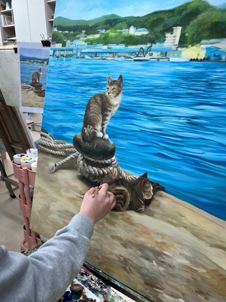 [강남 성인미술] 윤슬 위로 흐르는 낭만, 고양이 그림 풍경화로 완성하는 아크릴화 취미미술의 세계