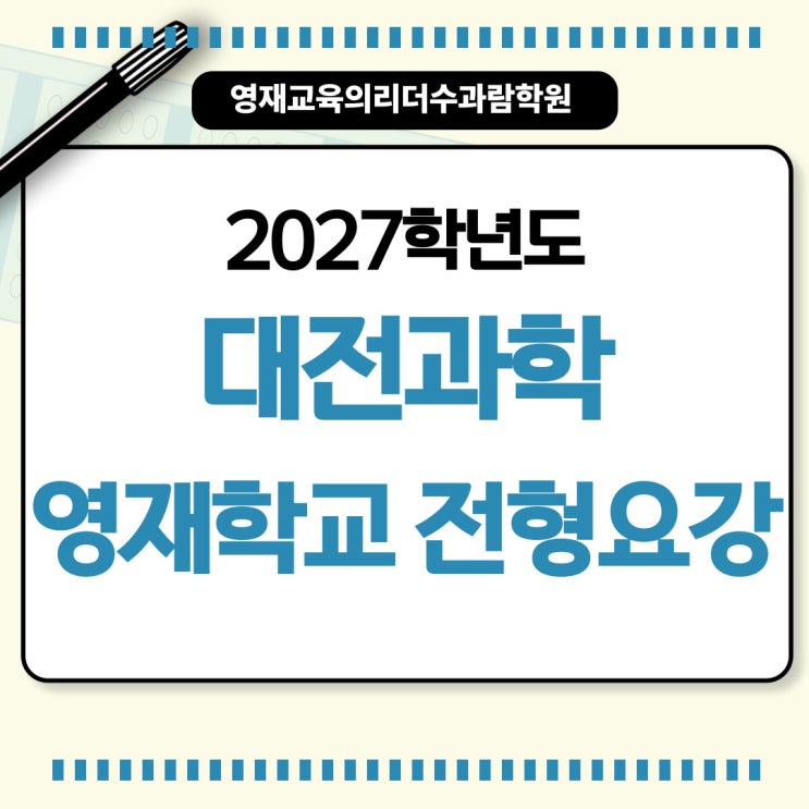 2027학년도 대전과학고 입학전형 달라진 점은? 전형 일정부터 자기소개서 작성법까지 한눈에 정리 창원영재학교준비 수과람학원
