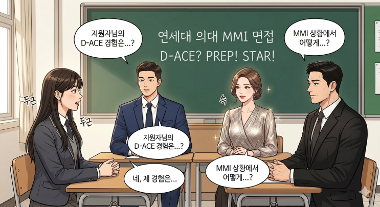 오해에서 해석으로, 판단 기준이 재구성되는 순간을 묻다 “왜 같은 행동을 보고도 판단은 완전히 달라질까요?” “처음 판단은 맞았을까요, 아니면 기준이 부족했던 걸까요?” “MMI 면접은 정답이 아니라 판단이 바뀌는 구조를 묻습니다” 같은 행동이라도 왜 전혀 다른 판단이 나올까요 이 문제는 누가 맞는가가 아니라 왜 우리는 쉽게 오해하고 그 판단이 어떤 순간 바뀌는지를 묻습니다 지금부터 내면의 ‘노바디’를 기준으로 판단이 형성되고 수정되는 구조를 D-ACE로 풀어보겠습니다 0. 시작하며 ; 판단은 보이는가, 해석되는가 연세대 의대 활동우수형 MMI는 지원자 1명을 대상으로 복수의 평가위원이 평가하며 약 20분 내외로 진행됩니....... <img src="https://blogthumb.pstatic.net/MjAyNjA0MDRfOTkg/MDAxNzc1MjkwNjc1MzYz.aK0ROTOQqaoLxyksJ5PFlI6-VRDpK2wkP0VNnuimsNMg.q52HygOssDR7wn8PwmXMozuDL7-cDDErSpcU2s9Sxu8g.PNG/yonsei-mmi-interview-dace-prep-star-structure.png?type=s3" />