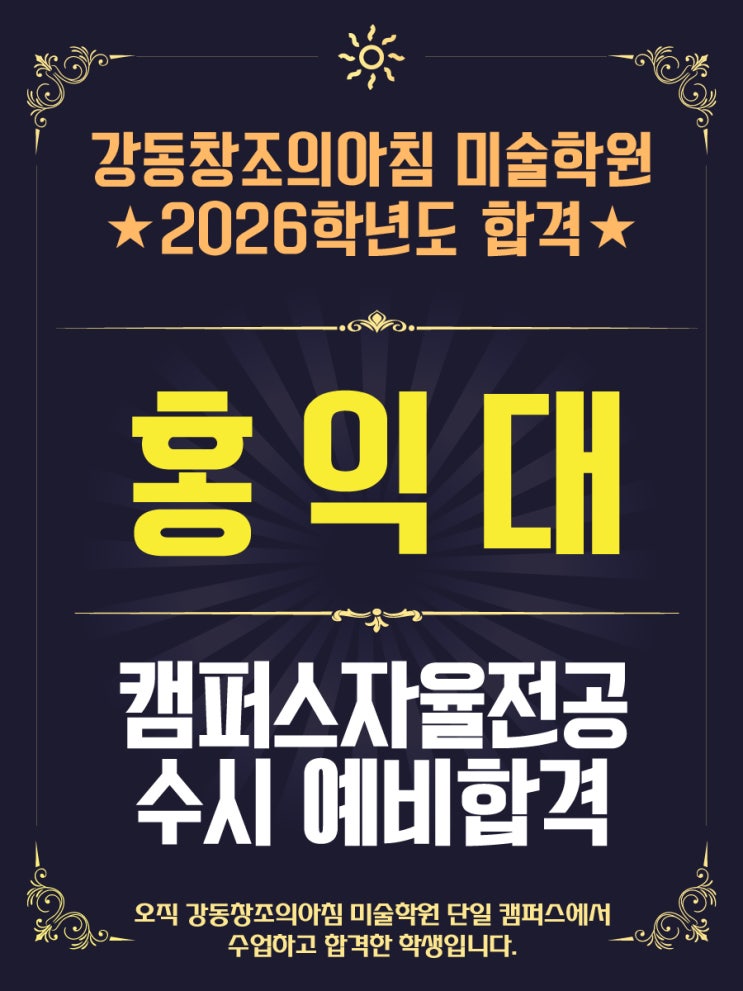 2026학년도 미대합격 - 홍익대학교 캠퍼스자율전공 수시 예비합격 - 강동창조의아침 미술학원