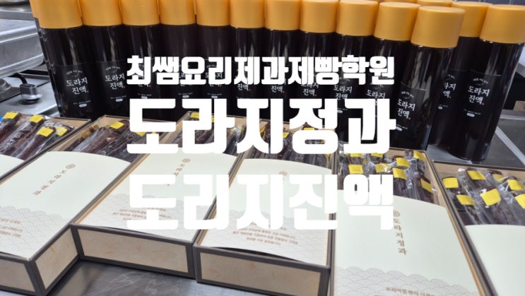 안녕하세요~ 최쌤이에요~ 오늘은 최쌤요리제과제빵학원의 시그니처 도라지정과를 소개합니다. 2015년 부터 시작한 도라지 정과는 2020년 코로나바이러스로 인한 피해와 확산때 기관지건강과 면역력 관련 먹거리들을 찾으면서 더욱 많이 찾기 시작했는데요. 지금까지 꾸준히 인기있는 수업!! 수강하시고 판매까지 이어 하시는 분들께서 효자 상품이라는 별명을 붙여주셨어요~ 어떻게? 포장을 해 놓으니 더 많이 예뻐졌지요? 좋은 도라지를 고르는 것부터 시작해서, 깨끗하게 세척하구요~ 쓴맛을 줄이고 식감을 살리기 위해 도라지를 곱게 고운 뒤, 손이 많이 가더라도 정성을 들여 하나하나 준비한답니다. 손질이 끝난 도라지는 불 조절에 신경 쓰....... <img src="https://blogthumb.pstatic.net/MjAyNTEyMTlfMjQ2/MDAxNzY2MTM2MTcxODUy.PsOEvyQ5saq8ZxTNFlUH6uihaH2NtNHMx7UlvJkCKsAg.-RuYGVTeHB9RntlwljcWGFvcYEkmSVMO3ofsc84tesYg.JPEG/900%A3%DF20251219%A3%DF112124.jpg?type=s3" />