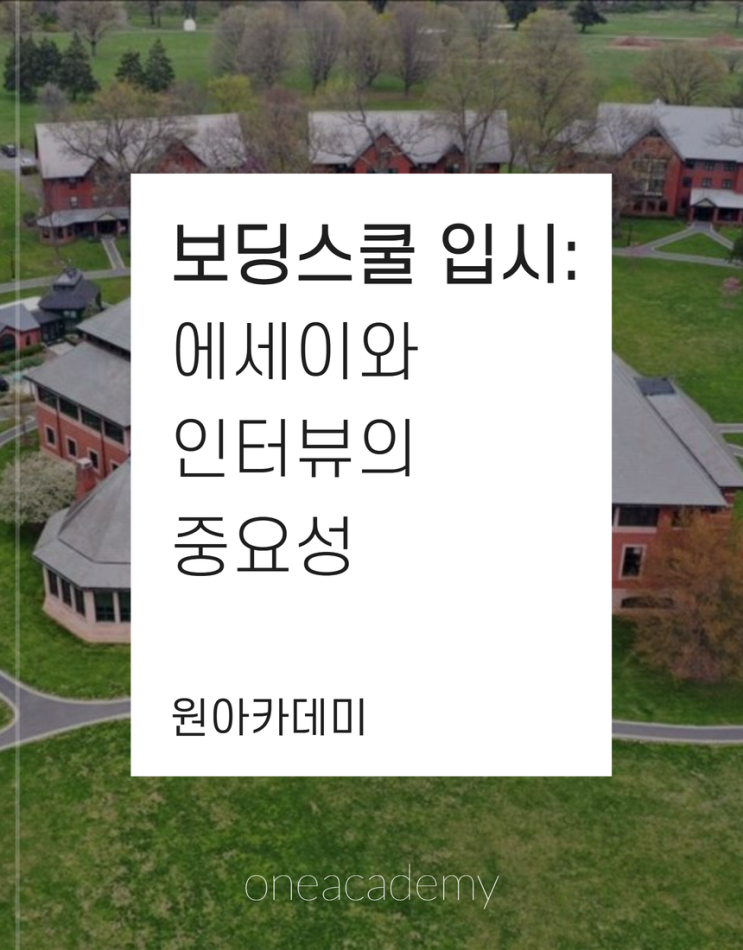 보딩스쿨 입시: 에세이와 인터뷰의 중요성 by. 압구정 원아카데미 (02-501-5590) 안녕하세요, 보딩스쿨·미국대학 전문 압구정 원아카데미 입니다. 2026년도 입학을 위한 미국 보딩스쿨 합격 결과가 모두 발표되고, 이제 2차/후기 지원을 준비중인 학생들과 내년 (2027년) 입학을 위한 지원 상담과 준비가 본격적으로 진행중에 있는데요. 오늘은 미국 보딩스쿨 합격 결과에 가장 큰 영향을 미치는 에세이와 인터뷰 항목에 대해 다뤄보려고 합니다. 명문 보딩스쿨 입시에서 가장 높은 비중을 차지하는 항목은 단연 에세이와 인터뷰입니다. 상위권 학생들의 지원 양상을 보면, 학업 성적과 시험 점수는 이미 일정 수준 이상으로 상향 평준화되어 있....... <img src="https://blogthumb.pstatic.net/MjAyNjAzMjNfMTEx/MDAxNzc0MjQ4NzkzNjY0.argpzmwxCvacMWgc0lzoAgKAHYjjB8mhqbgqBBgyo7Ug.2rwjrQ3NWIxjWQxB439Y9S1gdwog1GEHKP3oeBOKYKkg.PNG/%BA%B8%B5%F9%BD%BA%C4%F0_%283%29.png?type=s3" />