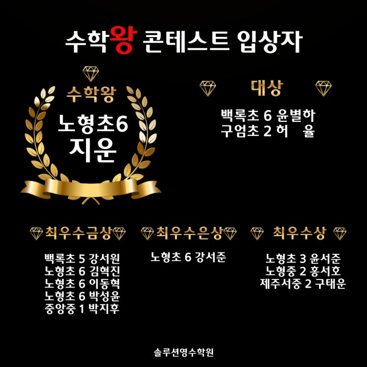 안녕하세요, 부모의 마음으로 가르치는 스마트해법 솔루션영수학원입니다. 와, 지난주 우리 학원에서 열린 수학왕 시상식이 정말 따뜻하고 특별했어요! 이번 시상식에서는 모든 학생이 노력과 성장을 인정받아 각자의 상을 받았습니다. 누군가는 높은 점수로, 또 누군가는 눈에 띄는 실력 향상으로, 또 다른 친구는 성실한 태도로 인정받았죠. 발표될 때마다 박수와 환호가 가득했고, 상장을 받은 아이들의 얼굴에는 환한 미소가 번졌습니다. “나도 해냈다!”는 자신감이 눈에 보일 정도였어요. 이번 경험이 아이들에게 단순한 상 하나가 아니라, 다음 도전을 향한 큰 동기부여가 되었기를 바랍니다. 더불어 지난 기말고사 성적향상자 시상식도....... <img src="https://blogthumb.pstatic.net/MjAyNjAxMTJfMjQ0/MDAxNzY4MTkzOTQwMDM0.y2fXIQtzd3TBqsJke6XY52nm04fCVlYCYkxTWS3wdZEg.fGVqVcMVaUaciwoxQCN_87qsKiDibh8i1qYPn9luuhUg.JPEG/%BC%F6%C7%D0%BF%D5-001.jpg?type=s3" />