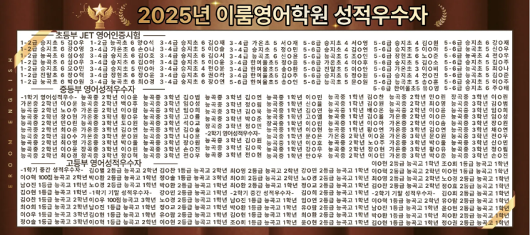 [초중고] 25년 이룸영어학원 학습결과~