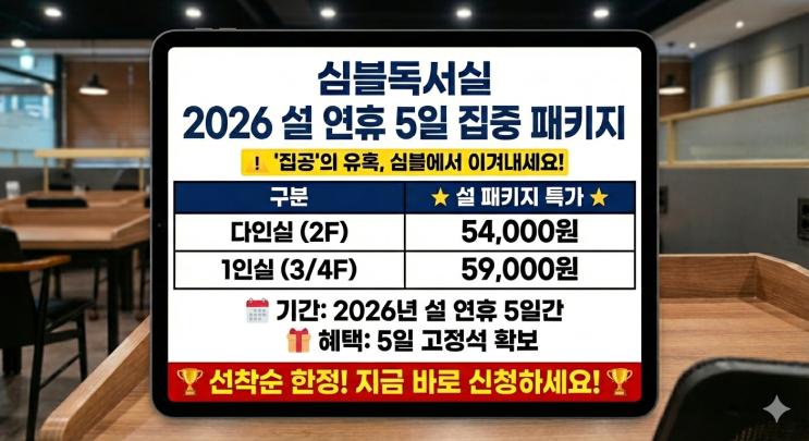 서면독서실 [심블독서실]_ 설 연휴 5일 집중 패키지