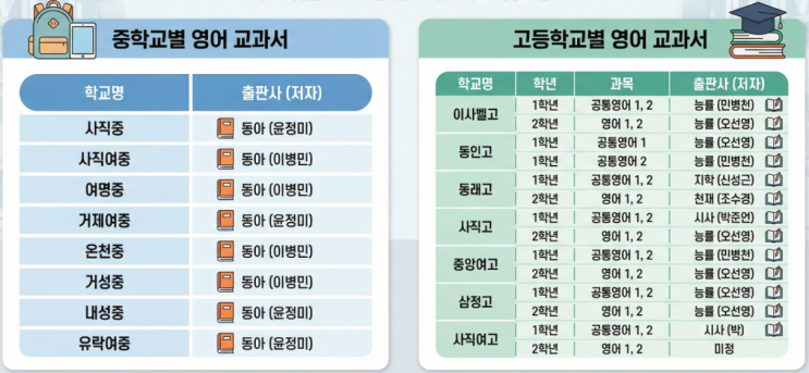 사직동 탑영어_사직동 중, 고등학교 교과서 목록