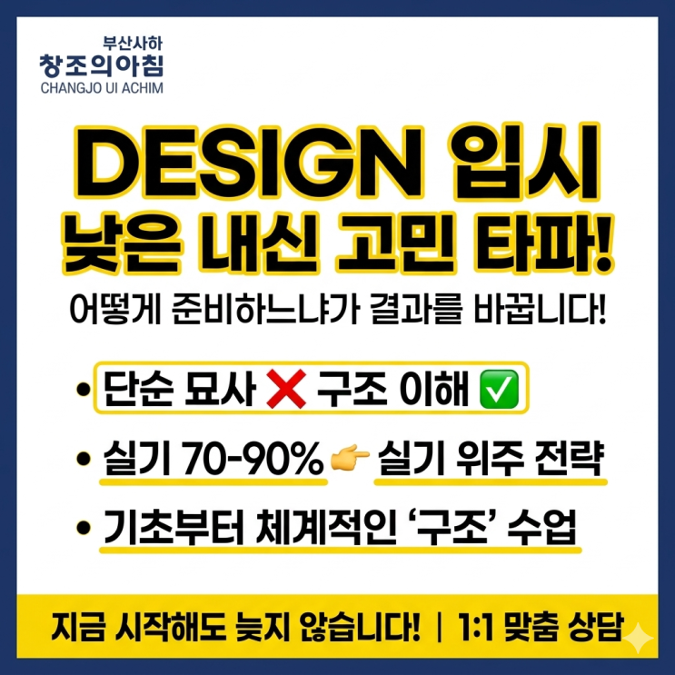 부산입시미술학원 사하 창조의아침, 낮은 성적으로도 수도권 디자인 합격 가능한 이유