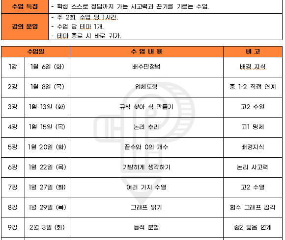[장전동 수학] 겨울 방학 사고력 특강 개요