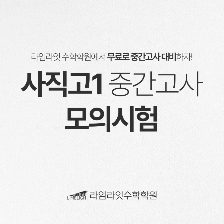 사직고 1학년 학생들에게 중간고사는 생각보다 훨씬 중요합니다. 처음 내신 흐름을 잡는 시험이기도 하고, 학교별 출제 스타일에 적응하는 과정이 이후 성적의 방향을 결정하는 경우가 많기 때문입니다. 그래서 라임라잇수학 사직고 수학 담당 문균T가 【사직고 중간고사 모의시험】을 통해 실전처럼 점검할 수 있는 기회를 마련했습니다. ▼사직고1 담당 문균T 만나보기▼ 사직동 라임라잇수학의 사직고 수학 모의시험은 어떻게 진행되나요? 사직고 중간고사 기출 유사 문제를 실제 시험 시간과 동일하게 풀어보고 시험 직후 바로 해설 강의를 통해 풀이 전략과 출제 의도를 정리하는 방식으로 진행됩니다. 모의시험 일정 안내 ★ 전 회차 무료....... <img src="https://blogthumb.pstatic.net/MjAyNjAzMTNfMjQw/MDAxNzczMzgyNTMyMzY1.OhDdjY7AP1laNxCZy5-xID-6H4k2Ueyr7ER0Ho4A8-og.v5c_yTL50WZJ0QEJLCV59FXeazYMO_MxYNm2KKC_RSUg.JPEG/0310_%B9%AE%B1%D5t-%BB%E7%C1%F7%B0%ED%B8%F0%C0%C7%BD%C3%C7%E8-05.jpg?type=s3" />