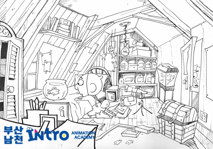 부산 입시 만화학원 남천 인트로 : 상상속 나만의 공간, 꿈을 현실로 만드는 드로잉 실력 키우기! 안녕하세요 부산 입시만화학원 남천 인트로 만화학원입니다 이제 완전 겨울에 접어드는 계절인데요, 요즘처럼 쌀쌀한 날씨에는 따뜻한 이불속이나, 나만의 비밀스러운 공간에서 그림을 그리며 하루를 보내고 싶은 생각이 들지 않나요?? 오늘 가져온 그림처럼, 포근하고 아늑한 다락방은 만화를 사랑하는 사람들에게는 최고의 작업실이죠ㅎㅎ 오늘의 그림에서는 1. 따뜻한 빛과 명암의 조화 2. 배경의 디테일과 스토리텔링 3.다양한 표현 기법 이 세가지를 중점으로 표현한 그림을 가져왔답니다! 다들 함께 분석해볼까요~! 스케치 단계 채색이 들어....... <img src="https://blogthumb.pstatic.net/MjAyNTExMTJfNDYg/MDAxNzYyOTMzMzEzNDM2.pK2aXqedQ7oqB_1Ax_RKEmviKZG-8_11gazPLXSpCXkg.HCuq8FNI6zCETZ08-Mhj6fDJw9xqv2q-gmP2l4NsTwEg.JPEG/output%A3%DF410458111.jpg?type=s3" />