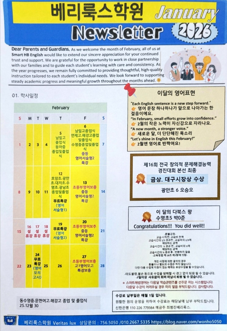 [이츠매쓰 학원 2026년 2월 일정안내]