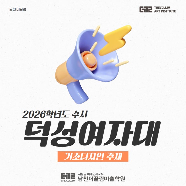 #수영구미대입시#기초디자인#부산미술학원#부산미대입시#부산미대입시준비 #부산미대#남구기초디자인학원#수영구미술학원 #남천입시미술학원#금련산미술학원#부산미대입시#소수정예수업#원장님특강#실전처럼#꼼꼼하게#부산미술학원#남천미술학원#남천동미술학원#남구미대입시 #남구입시미술학원 #남구기초디자인 소수 정예 + 원장님 직강 + 서울 강남 교육시스템! 이 모든 것을 한 곳에서 누리다! 남천 더끌림 미술학원 안녕하세요~ 부산 남천 X 서울 강남 남천 더끌림 미술학원 입니다. 2026년 실기가 끝나가고 있는데요? 매년 모두가 관심주시는 소재에 대해 올려보겠습니다~ 오늘 보여드리는 소재는 2026년 덕성여자대학교 기초디자인 수시 문....... <img src="https://blogthumb.pstatic.net/MjAyNjAyMDRfODYg/MDAxNzcwMTk3Nzk1NDA3.c00uHH_8Qe29kXndYqd7obK3xfbTywntxeCXbn6bXqcg.PLVfYdor0TPqDRqfdyPbqVXeolxLMRCuIHcPT-16Wjkg.JPEG/%B4%F6%BC%BA%BF%A9%B4%EB_%B1%E2%B5%F0.jpeg?type=s3" />