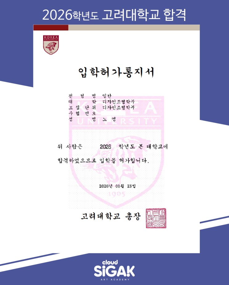 안녕하세요. 학생 한 명 한 명의 가능성을 끝까지 함께 고민하는 부산 입시미술학원 시각 미술학원 입니다. 오늘은 정말 기쁜 소식을 전해드릴려고 해요. 저희 부산입시미술학원 시각미술학원에서 꾸준이 준비해 온 학생이 "고려대학교 디자인조형학부 합격"이라는 값진 결과를 만들어 냈습니다. 기초부터 차근차근 쌓아온 실력과 흔들리지않는 태도, 그리고 끝까지 포기 하지 않았던 과정이 만들어낸 결과라 더욱 의미가 깊습니다. 특히 이 학생은 평소 성실하고 꾸준하게 학원 수업을 해오며 국민대학교 실기대회에서 입선이라는 성과도 거두며, 실기 경쟁력과 가능성을 동시에 증명해 보였습니다. 오늘은 고려대학교 디자인학부 입....... <img src="https://blogthumb.pstatic.net/MjAyNjAyMDZfNTkg/MDAxNzcwMzU0NTM5NDE5.qdBbo4S4BqgOX9jEUctgTbdZBty0Vnxt_sUeCcJP9dwg.kFGDr74vSWj2XouGgi79FMGd9CBX1vYbmouKI8-FOGgg.PNG/KakaoTalk_20260206_140720566.png?type=s3" />