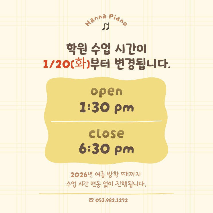 # 『 수업 시간 변경 안내 』 대구 동구 피아노 학원, 대구 방촌동 피아노 학원, 대구 용호초 피아노학원
