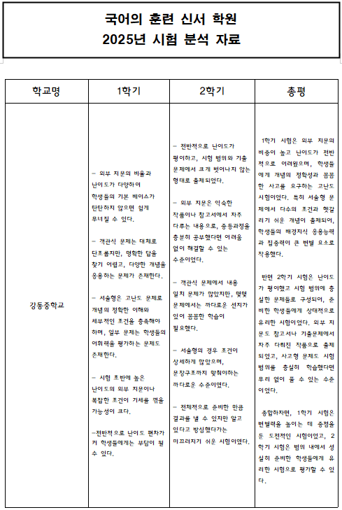 [시험 분석지 제공]강동중, 신기중, 새론중 2025학년도에는 어떠했나!?
