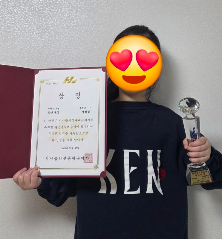 멀리서 피아노 배우러 오는 친구~^^ 교육감상 노리며 학년대상 받기 위해 저희 원으로 온 친구에요~ 딱 한달만에 학년대상 탔네요~♡ 26년도 교육감상 가보자~~아~~ <img src="https://blogthumb.pstatic.net/MjAyNjAyMDVfMjE4/MDAxNzcwMjY5OTU0MDA2.eNzc30oPYERM87GgkJ4e4I4DJCN6JYkN92YOe4K58yQg.i9TvYtOehOz3c9oWflaqABdEznSyzSFT3-CfyBcPc2gg.JPEG/900%A3%DF1768451507401.jpg?type=s3" />