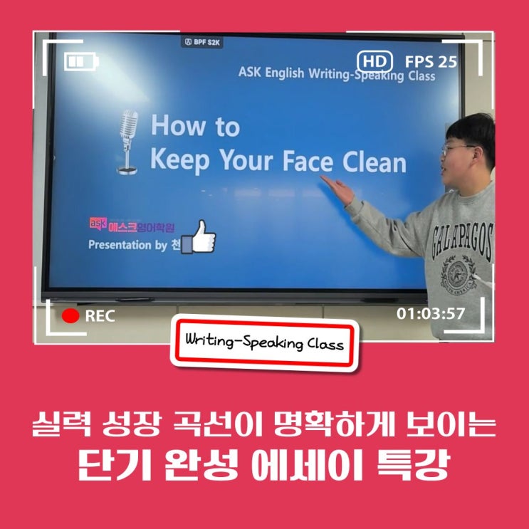 중학교에 진학하면 많은 학생과 학부모님께서 가장 걱정하는 부분이 내신 시험과 수행평가입니다. 초등학교 교육과정과 다른 평가 제도가 시작되고 우리 아이가 원하는 결과를 얻을 수 있을지 염려하고 고민하시게 됩니다. 특히, 단순히 영어 문제를 푸는 것을 넘어 주제에 맞는 글을 쓰고 이를 선생님 앞에서 발표하는 수행평가는 평소 영작과 발표 훈련이 되어 있지 않으면 큰 부담으로 다가오기 마련입니다. 지난 1월 겨울방학, 칠곡3지구 영어학원 에스크에서는 이러한 고민을 뿌리부터 해결하기 위해 '겨울방학 에세이 특강'을 진행했습니다. 우리 아이들이 어떻게 '영작의 두려움'을 극복하고 '논리적인 에세이&#....... <img src="https://blogthumb.pstatic.net/MjAyNjAyMTBfMTI1/MDAxNzcwNjUzNTUxMzI3.FuLz1JbOqVjWL1PYUBZ2uOAsRzNkjNzkan1TFsXjYkcg.XCxuvO0hs6sTXIBzaHDQFuFmkoFxx6cKKdd_TVDjzyQg.JPEG/%BF%A1%BD%BA%C5%A9_%B9%E6%C7%D0%C6%AF%B0%AD_%BA%ED%B7%CE%B1%D7.jpg?type=s3" />
