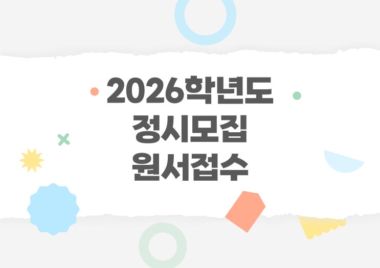 2026학년도 정시 원서접수 Q&A 원서 제출 전 반드시 확인해야 할 모든 것 12월 29일(월)부터 12월 31일(수)까지 2026학년도 정시모집 원서접수가 진행됩니다. 일부 대학의 추가모집을 제외하면, ‘26학번’으로 대학에 입학할 수 있는 사실상 마지막 기회입니다. 정시는 짧은 기간 안에 중대한 결정을 내려야 하는 만큼, 막연한 기대나 불안보다는 분명한 기준과 충분한 정보가 필요합니다. 정시 원서접수 직전, 수험생과 학부모님들이 가장 많이 묻는 질문을 Q&A 형식으로 정리했습니다. 정시 원서접수에서 가장 먼저 해야할 준비는 무엇인가요?? 가장 먼저 해야 할 일은 지원의 원칙을 명확히 세우는 것입니다. 많은 수험생들이 성적표....... <img src="https://blogthumb.pstatic.net/MjAyNTEyMjJfNzkg/MDAxNzY2MzkxNjkyODQ3.BW58p63ow9-i1YxxwLiB6i4goI8ZN9qN4_T7Ids4oOQg.GzGcE4z7Uc4h-GJIDj3S73CY3RBE8G4aoCaZrbybhNog.JPEG/001.jpg?type=s3" />