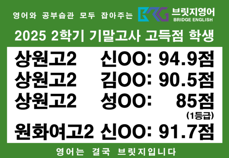 (신월성브릿지영어) 상원고2 94.9 원화여고2 91.7
