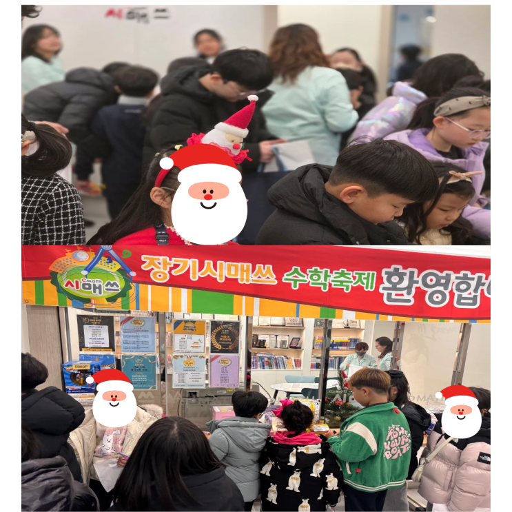 크리스마스, 장기시매쓰 day 이번 크리스마스에는 장기시매쓰에서 포인트 파티를 진행했습니다. 여러 가지 보드게임과 특히 이번에 아이들이 가장 좋아했던 것은 ‘골든벨’을 도전이었어요. 아이들이 골든벨 시작할 때 함성소리 와 진지함에 감동! 골든벨은 참여인원이 많아 3개 조로 나누어 진행 고학년 (5~6년) 저학년(2~4년) 유치부와 초등(7세~초1) 정답보다 더 인상 깊었던 건 유치부 학생이 우주 공간에 존재하는 행성 중 수성이 자전주기가 길어 낮과 밤의 온도차가 600도에 달한다는 행성에 대한 깊이 있는 상식에 감동했습니다 아이들이 문제를 바라보는 사고 과정과 접근 방식이었습니다. “아, 이렇게 생각할 수 있구나.”....... <img src="https://blogthumb.pstatic.net/MjAyNTEyMjVfNzYg/MDAxNzY2NjQwNjYyMjA5.LyDd2rZrcfKb9i267FNb4BGUleEkuPfToBzYjCii5ZUg.YtlfDHUlLO0Yp4Ce2twNwEMTAUmfqDTEXIgEWuRFlhUg.PNG/%C1%A6%B8%F1%C0%BB_%C0%D4%B7%C2%C7%D8%C1%D6%BC%BC%BF%E4._%2821%29.png?type=s3" />